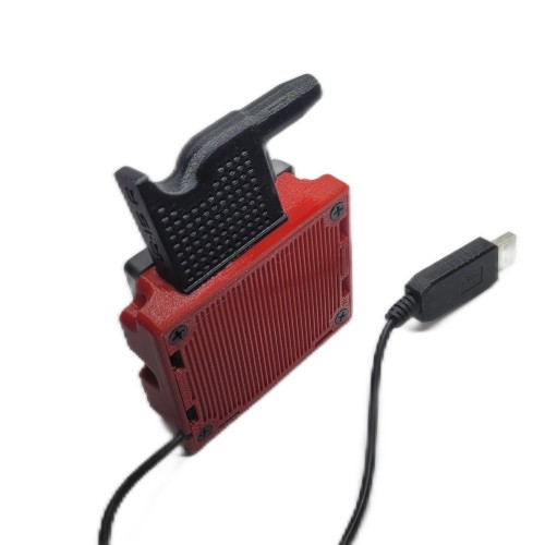 The Semi Auto .223 AR-15 USB Chamber Chiller Red uses a 60mm turbo fan, and an external USB battery pack.