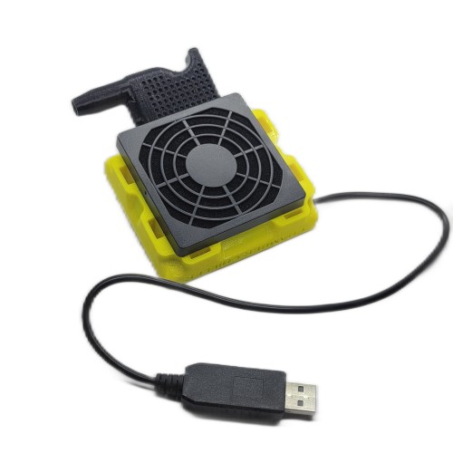 The Semi Auto .223 AR-15 USB Chamber Chiller Yellow uses a 60mm turbo fan, and an external USB battery pack.