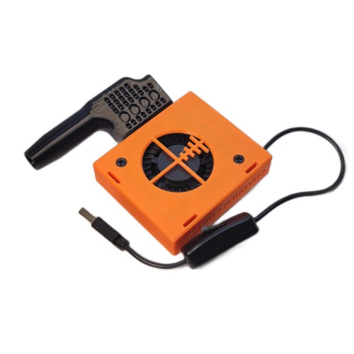 The Bolt Action .338-.408 USB Chamber Chiller is designed to fit short, long and magnum bolt action rifles as well as other semi-automatic rifles and bolt action rifles with a minimum port opening of 90.00mm wide by 17.2mm tall (3.55 inches wide by 0.68 inches tall). It is ideal for rifle cartridges with a rim diameter of 12.29-17mm. The Bolt Action .338-.408 USB Chamber Chiller Orange uses a 60mm turbo fan and an external USB power source provided by the customer. This unit can operate off of any powered USB port including some mobile phones. Adaptors are not included.