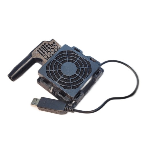 The Bolt Action .338-.408 USB Chamber Chiller Black uses a 60mm turbo fan and an external USB power source. This unit can operate off of any powered USB port including some mobile phones. Adaptors are not included.