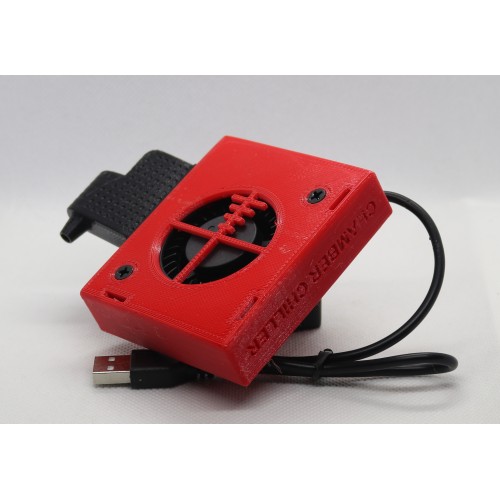 The 22 LR USB Chamber Chiller is designed to fit both bolt and semi automatic rimfire rifles with a minimum ejection port opening of 32mm wide by 11.20mm tall (1.26 inches wide by 0.45 inches tall). The 22 LR USB Chamber Chiller Red uses a 60mm turbo fan and an external USB power source provided by the customer. This unit can operate off of any powered USB port including some mobile phones. Adaptors are not included.